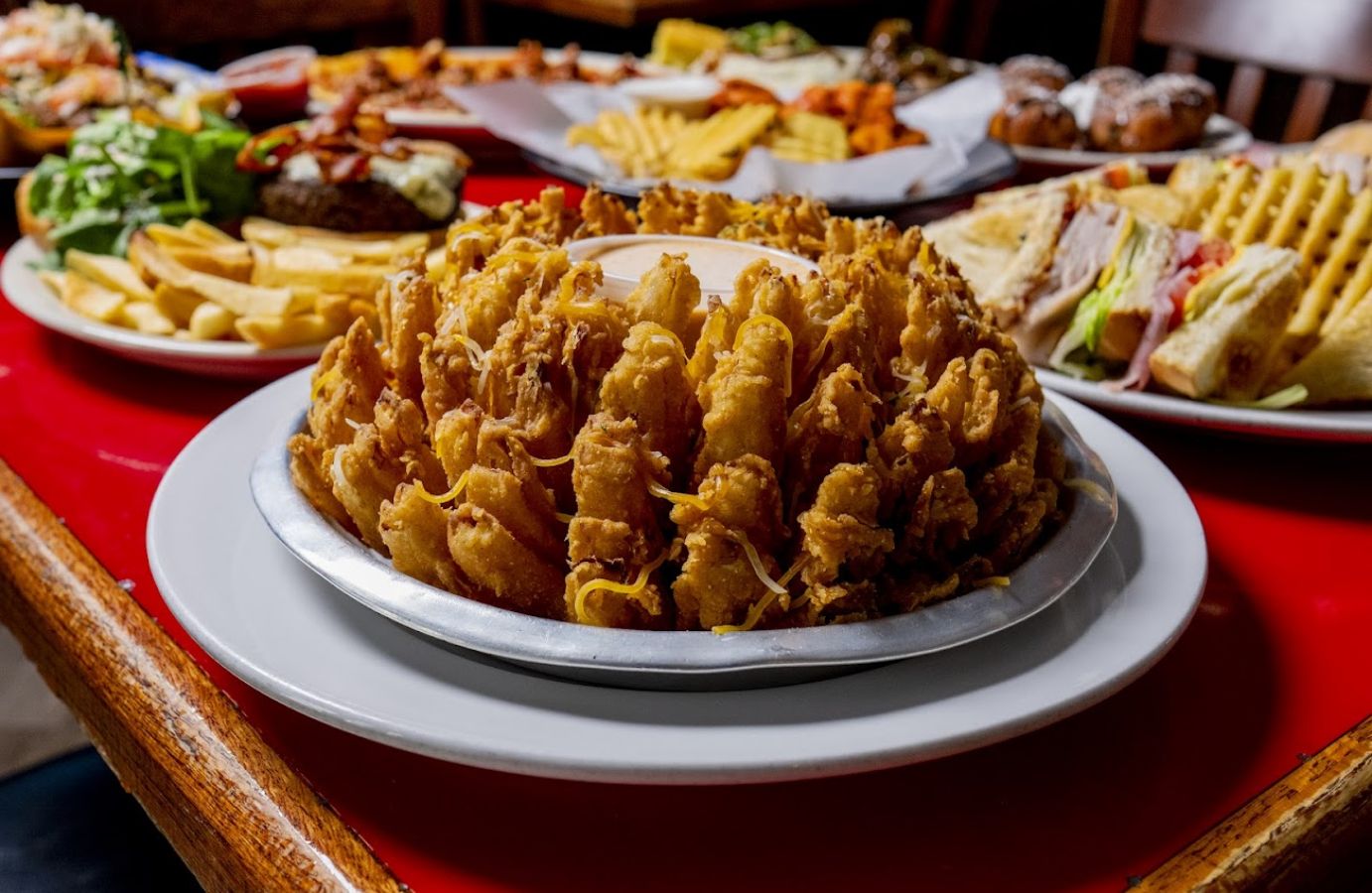 Customers rave about the generous portions and homemade taste of the food at Brooke's. From the juicy burgers with waffle fries to the mouthwatering quesadillas stuffed with chicken and cheese, every dish is a hit. The Sissy Nuggets and wings are favorites among patrons, and the blooming onion cooked to perfection is a must-try.